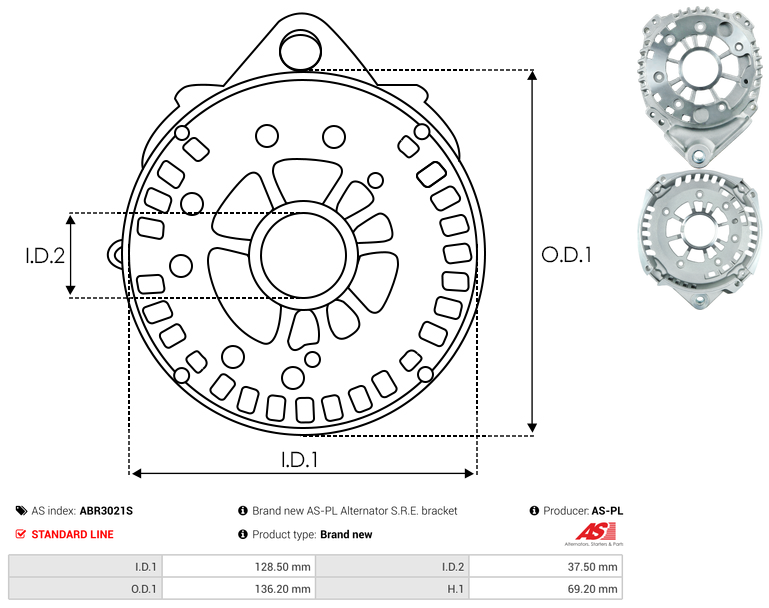 | Inside Diameter (I.D.1) | 128.50 mm |
