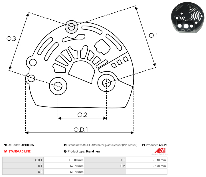 | Mount Hole Center - Center (O.1) | 67.70 mm |