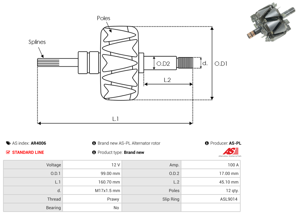 Brand new AS-PL Alternator rotor
