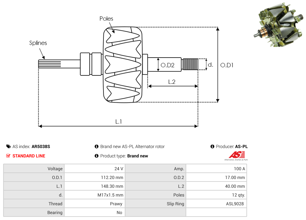| Thread size & pitch (d.) | M17x1.5 mm |