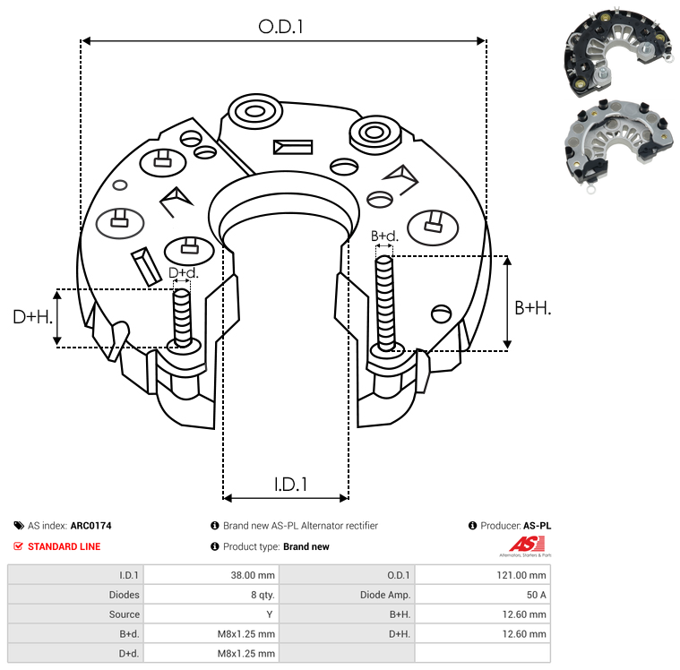 | B+ Stud Diameter & Thread Pitch (B+d) | M8x1.25 mm |
