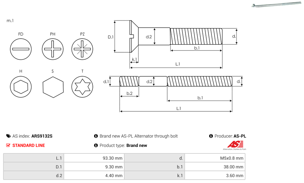 | Countersink depth (k.1) | 3.60 mm |