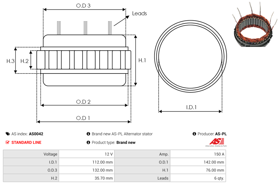 | Outside Diameter of Windings (O.D.3) | 132 mm |