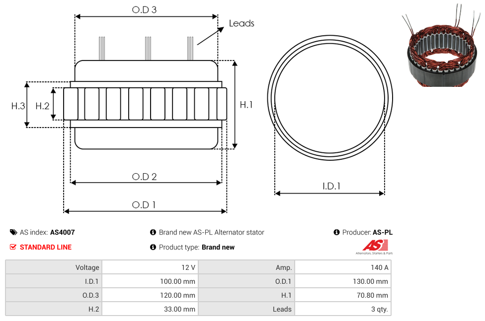 | Outside Diameter of Windings (O.D.3) | 120 mm |