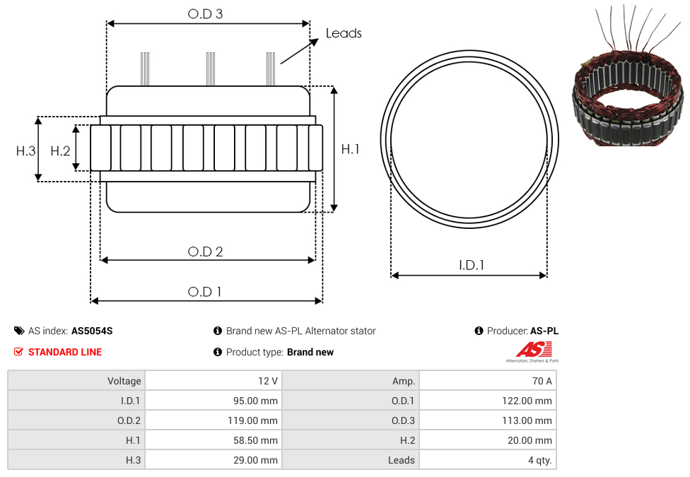 | Outside Diameter of Windings (O.D.3) | 113 mm |
