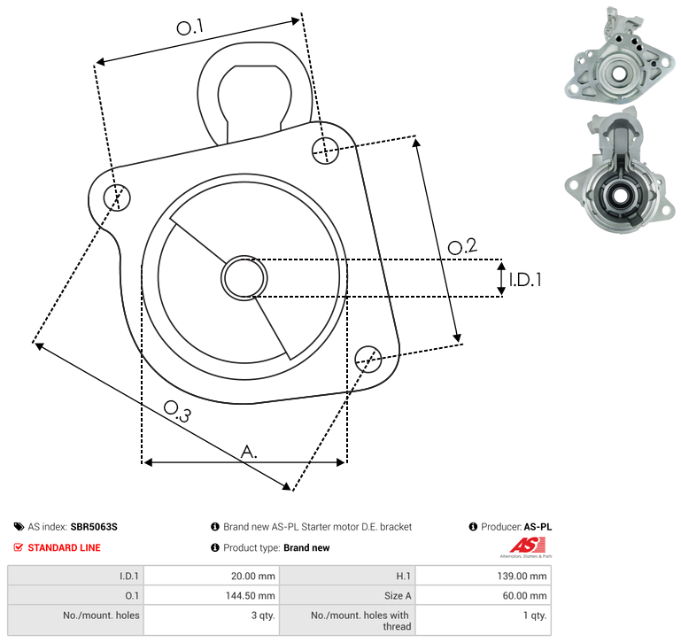 | Mount Hole Center - Center (O.1) | 144.50 mm |