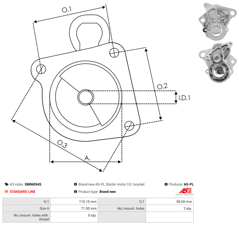 SBR6054S - Brand new AS-PL Starter motor D.E. bracket