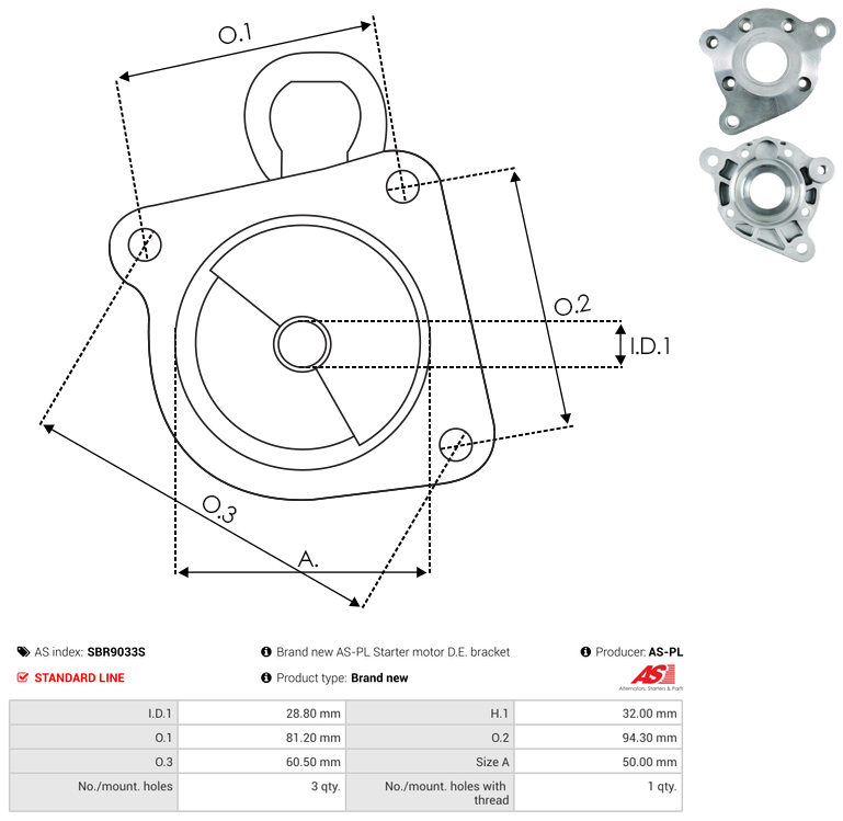| No./Mount holes | 3 qty |