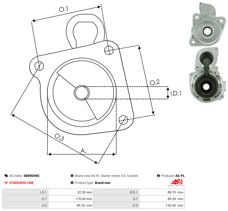 SBR9049S - Brand new AS-PL Starter motor D.E. bracket