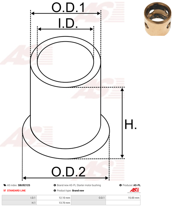 | Inside Diameter (I.D.1) | 12.10 mm |