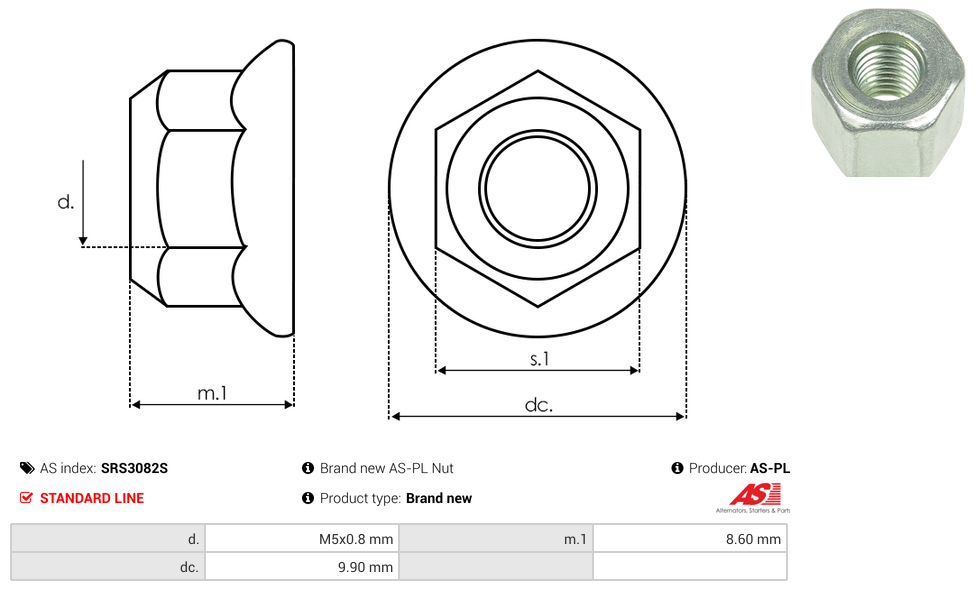 | Thread size & pitch (d.) | M5x0.8 mm |