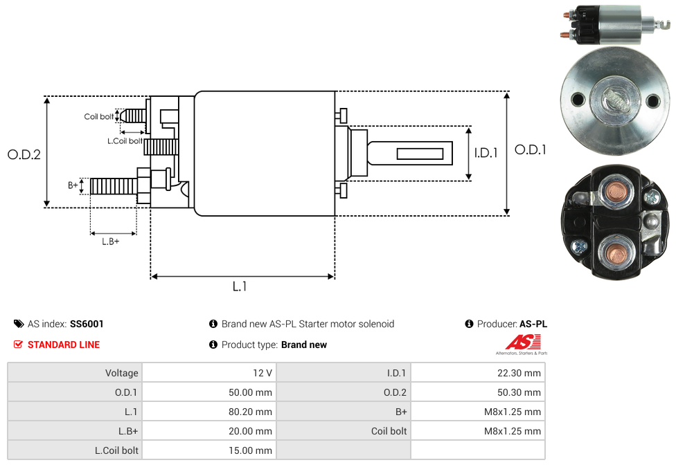 | B+ Stud Diameter & Thread Pitch (B+) | M8x1.25 mm |