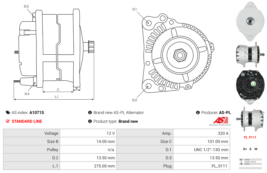 | Diameter (D.1) | UNC 1/2"-13G mm |