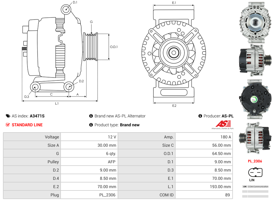 A3471S - ASPL Standard line - Valeo Style Aftermarket Regulator and Pulley