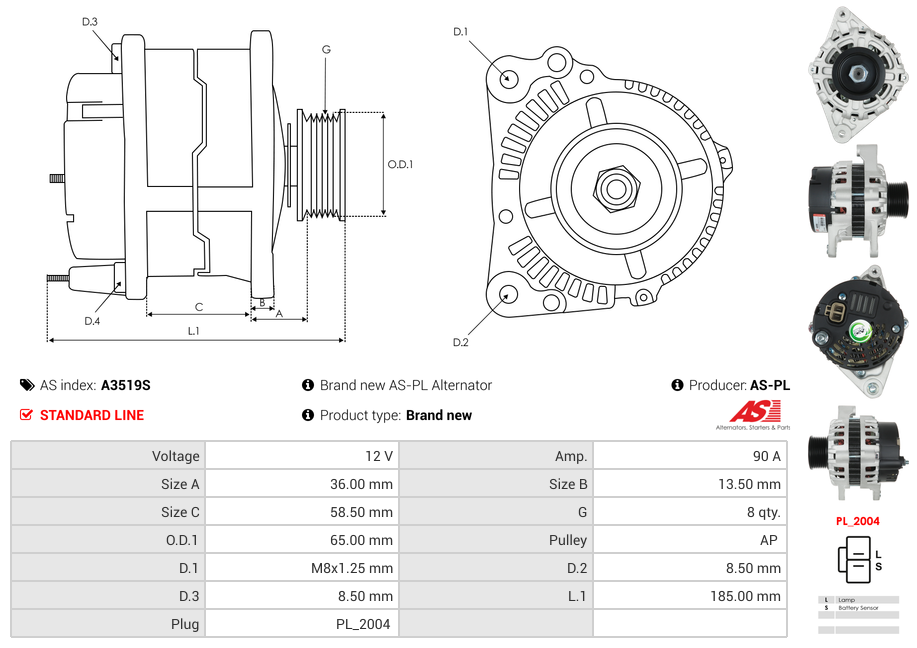 | Pulley Outside Diameter (O.D.1) | 65 mm |