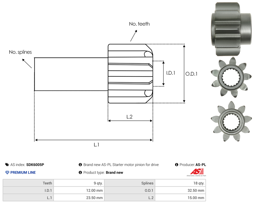 | No./Splines | 18 qty |
