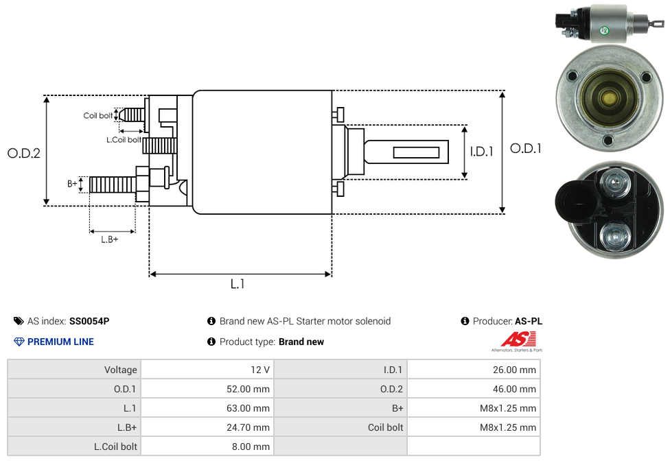 | B+ Stud Diameter & Thread Pitch (B+) | M8x1.25 mm |