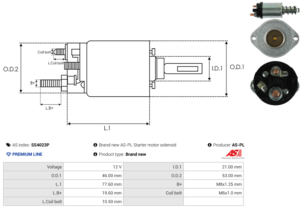 | B+ Stud Diameter & Thread Pitch (B+) | M8x1.25 mm |