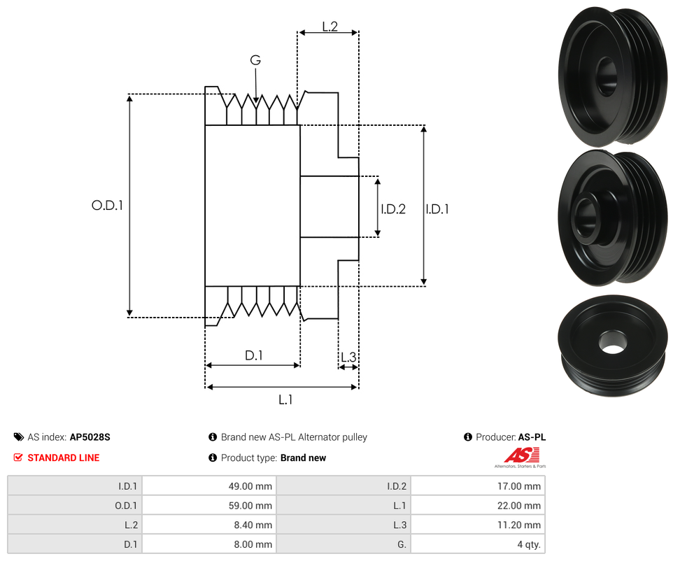 | Pulley Grooves | 4 qty |