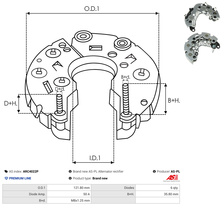 | B+ Stud Diameter & Thread Pitch (B+d) | M8x1.25 mm |