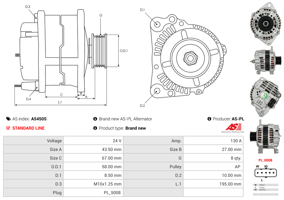 | Pulley to Mount Distance (A) | 43.50 mm |