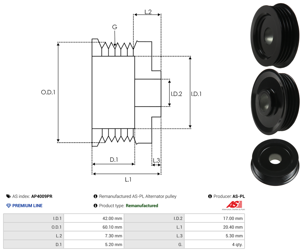 | Outside Diameter (O.D.1) | 60.10 mm |