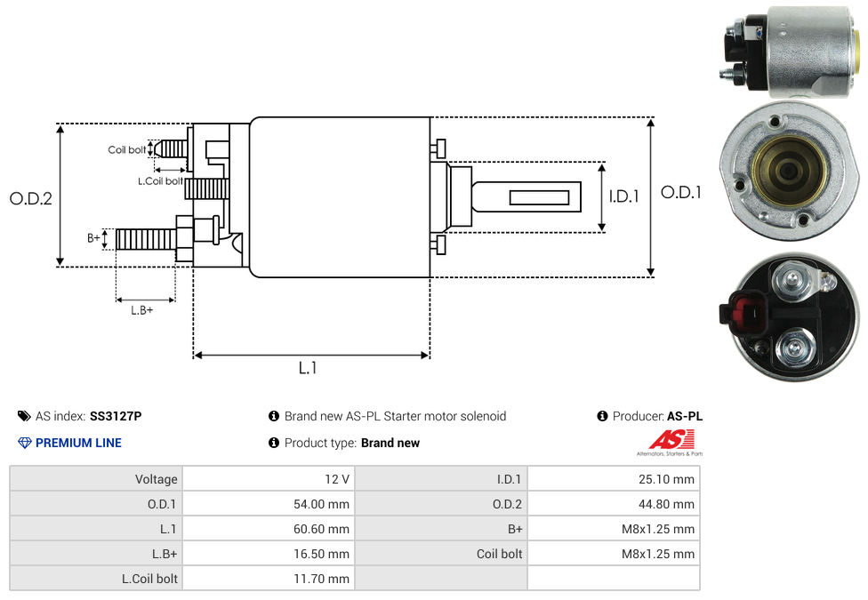 | B+ Stud Diameter & Thread Pitch (B+) | M8x1.25 mm |