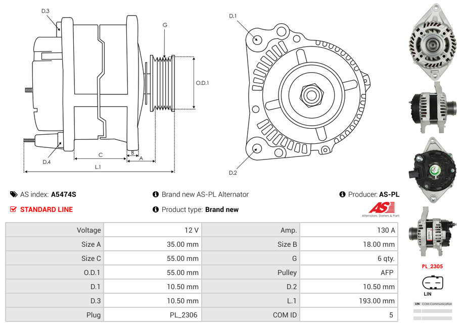 | Pulley Outside Diameter (O.D.1) | 55 mm |