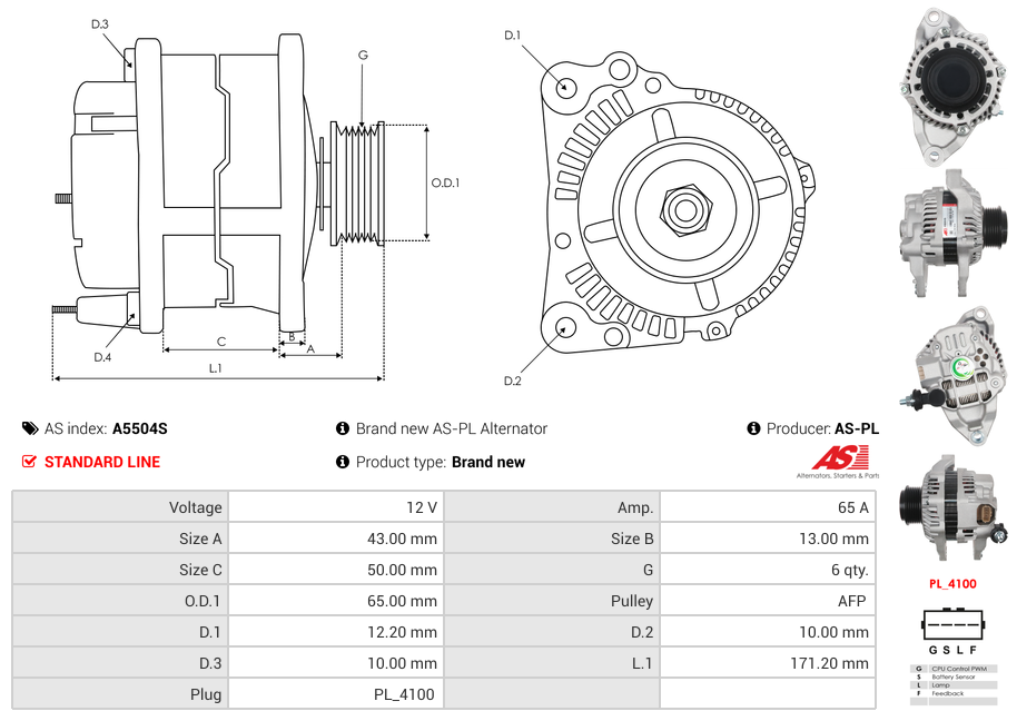 | Pulley Outside Diameter (O.D.1) | 65 mm |