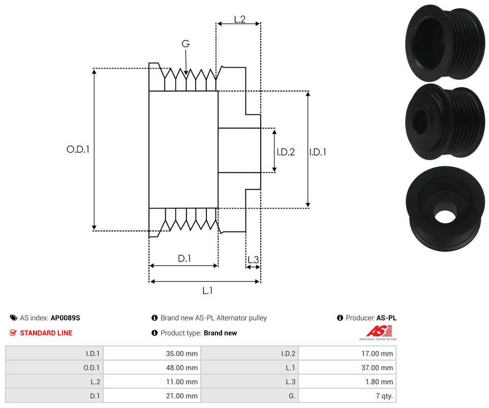 | Pulley Grooves | 7 qty |