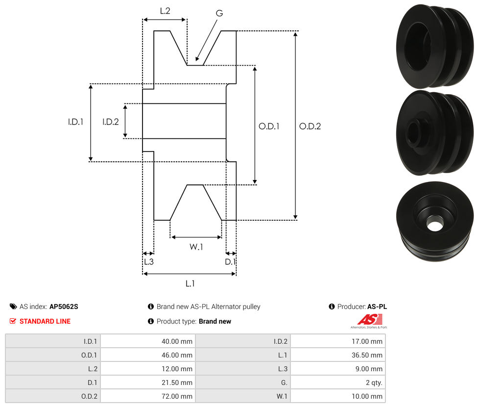 | Pulley Grooves | 2 qty |