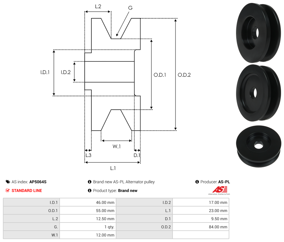 | Pulley Grooves | 1 qty |
