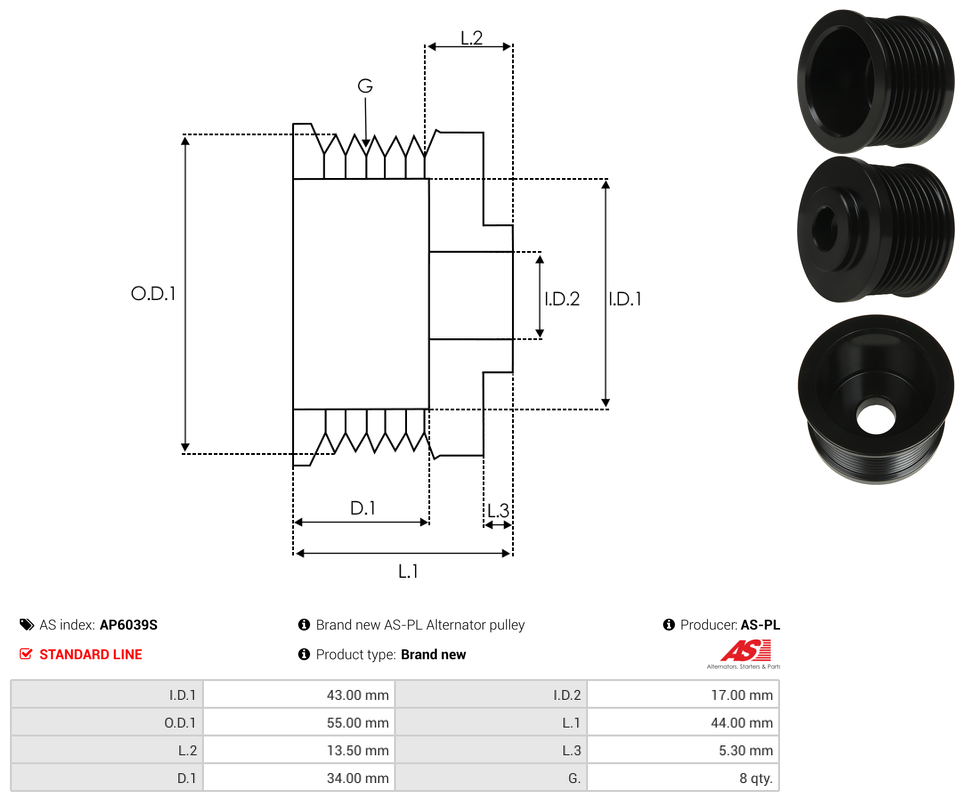 | Pulley Grooves | 8 qty |