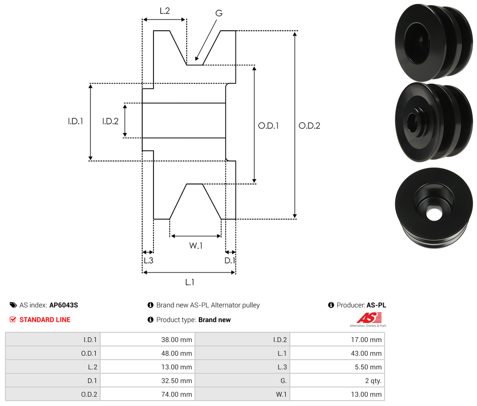 | Pulley Grooves | 2 qty |