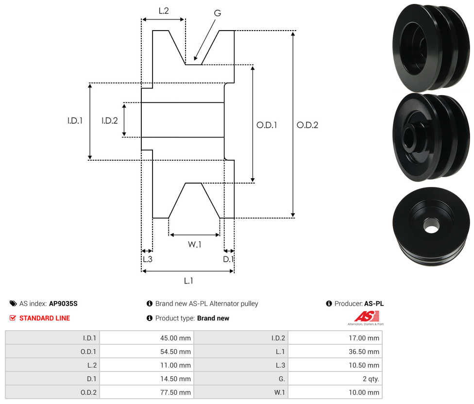| Outside Diameter (O.D.2) | 77.50 mm |
