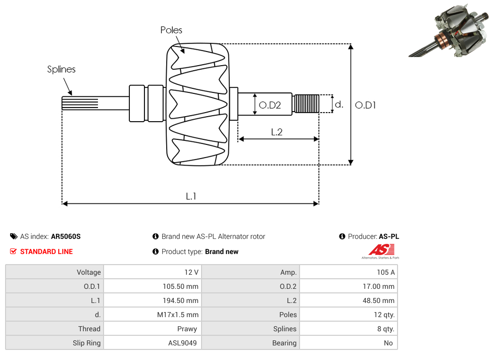 | Thread size & pitch (d.) | M17x1.5 mm |