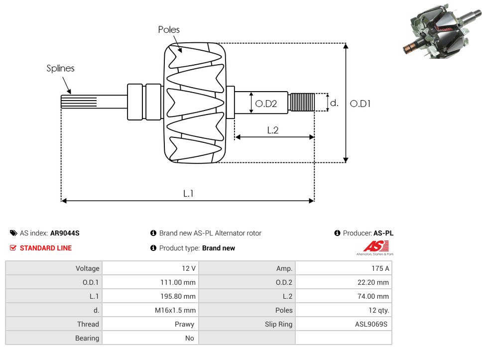 | Thread size & pitch (d.) | M16x1.5 mm |