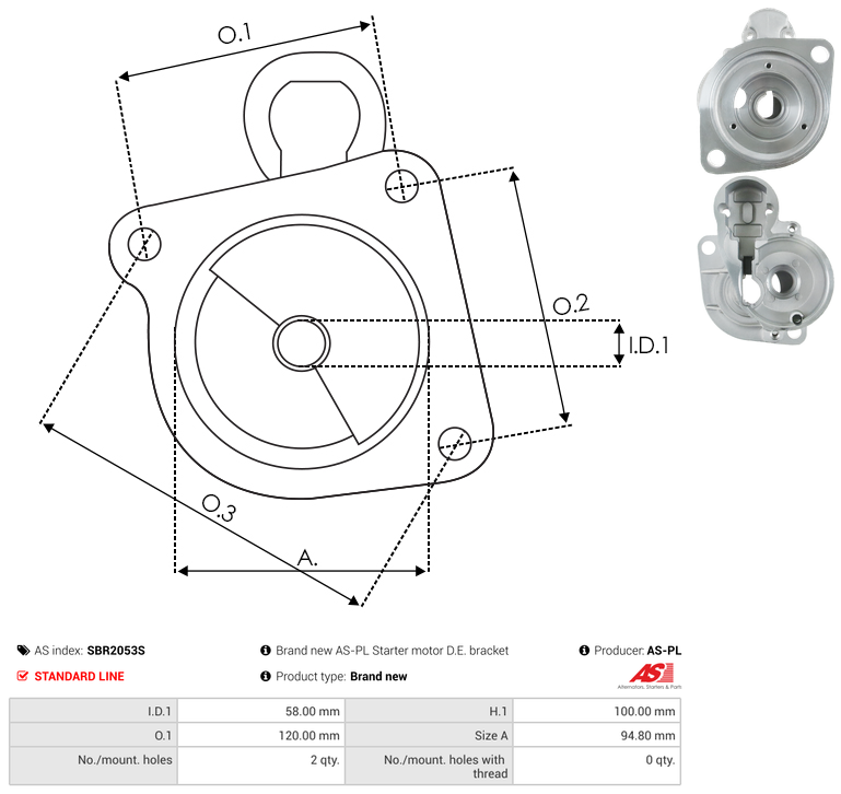 SBR2053S - Brand new AS-PL Starter motor D.E. bracket