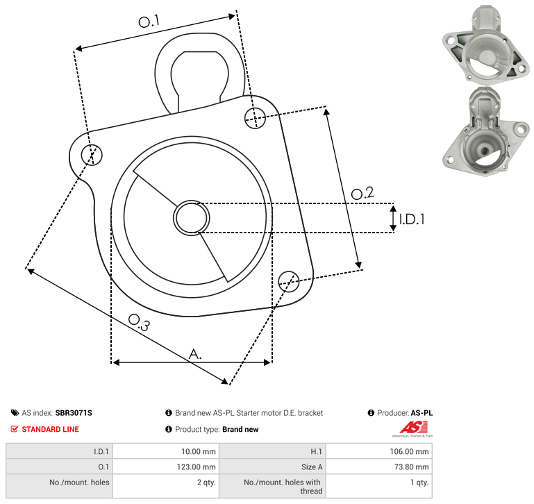| No./Mount holes | 2 qty |
