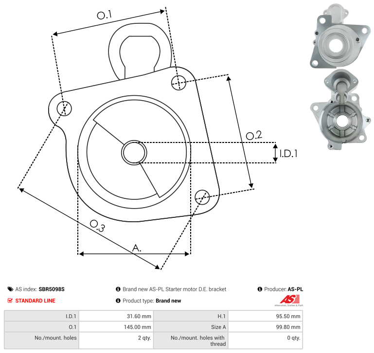 | Mount Hole Center - Center (O.1) | 145 mm |