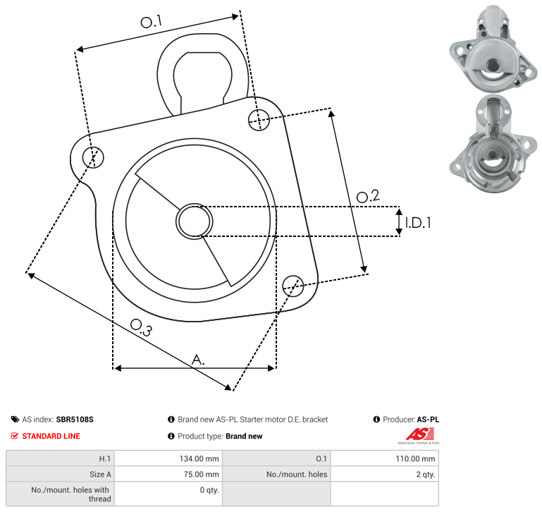 | No./Mount holes | 2 qty |