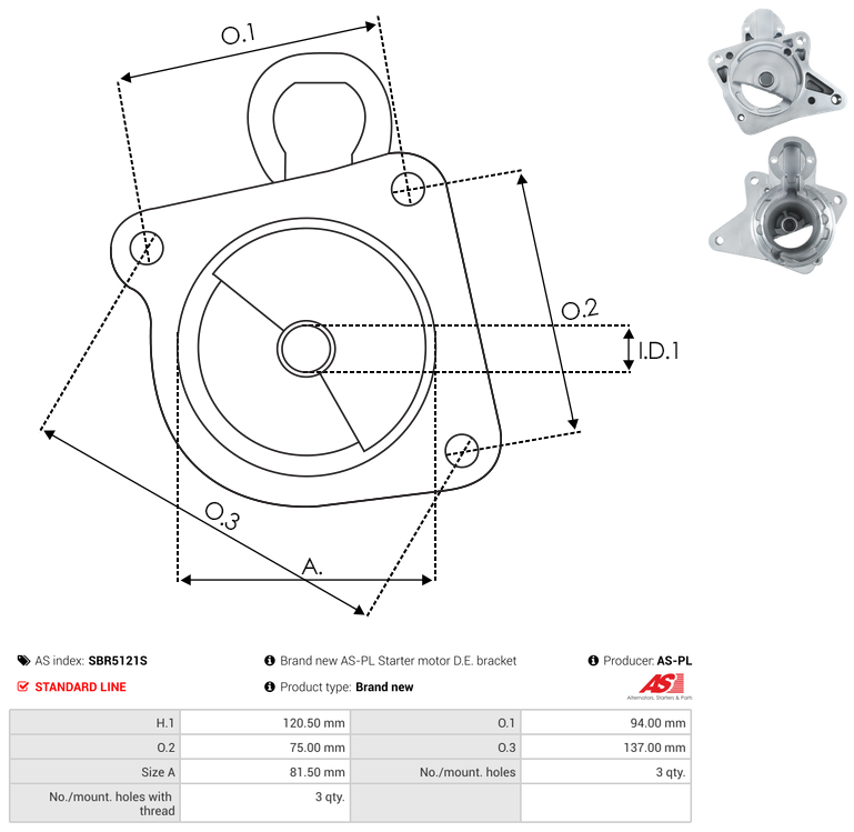 | No./Mount holes | 3 qty |