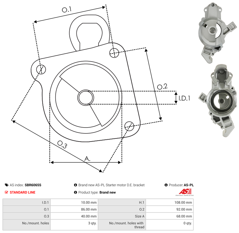 SBR6065S - Brand new AS-PL Starter motor D.E. bracket