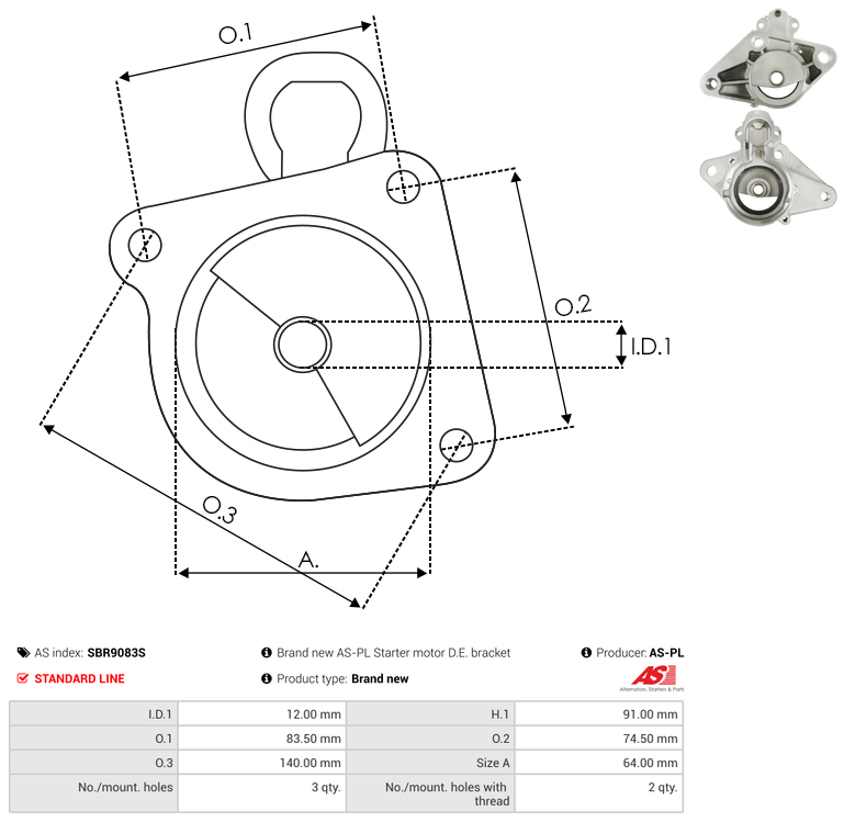 | Mount Hole Center - Center (O.1) | 83.50 mm |