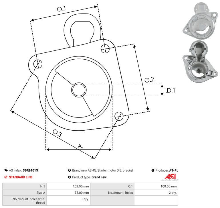 | Mount Hole Center - Center (O.1) | 108 mm |