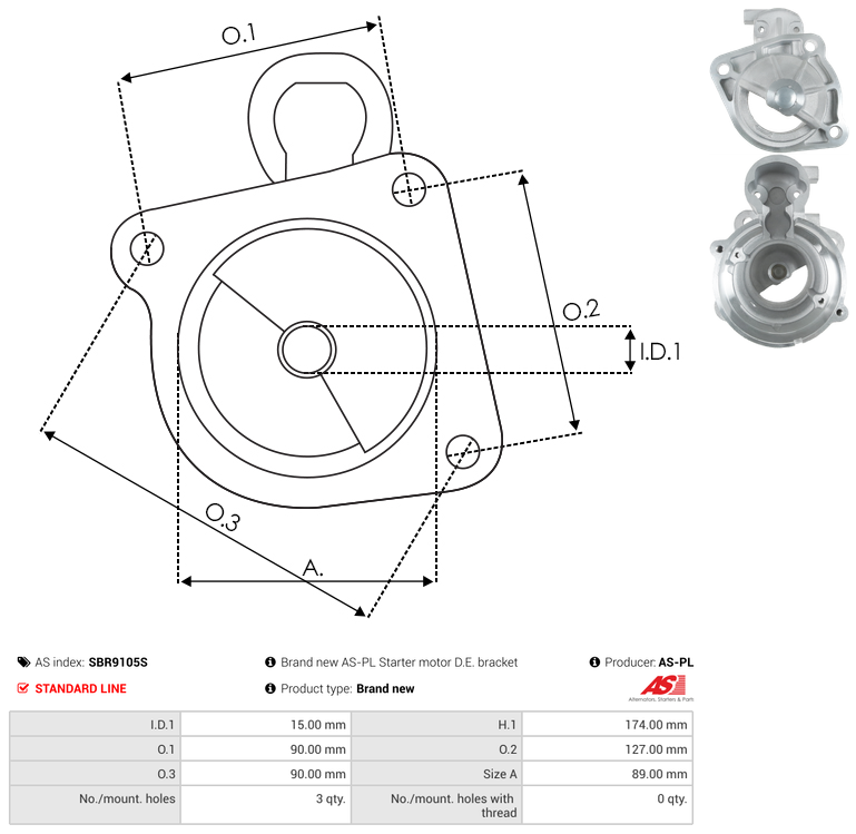 SBR9105S - Brand new AS-PL Starter motor D.E. bracket