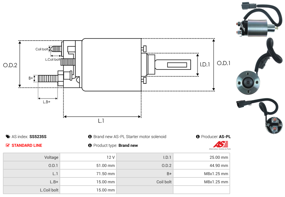 | B+ Stud Diameter & Thread Pitch (B+) | M8x1.25 mm |