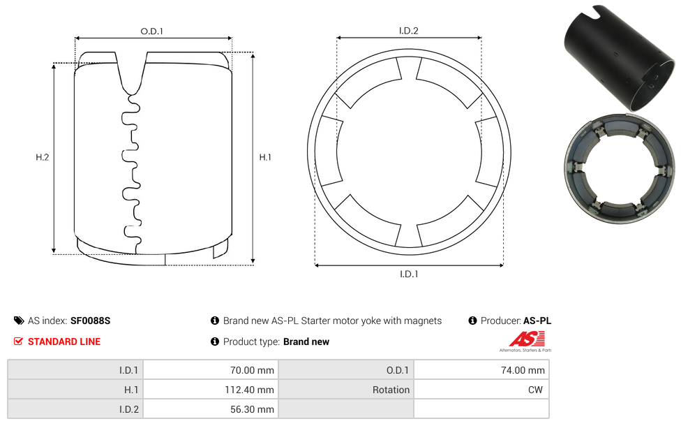 SF0088S - Brand new AS-PL Starter motor yoke with magnets