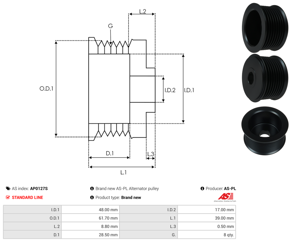 | Outside Diameter (O.D.1) | 61.70 mm |