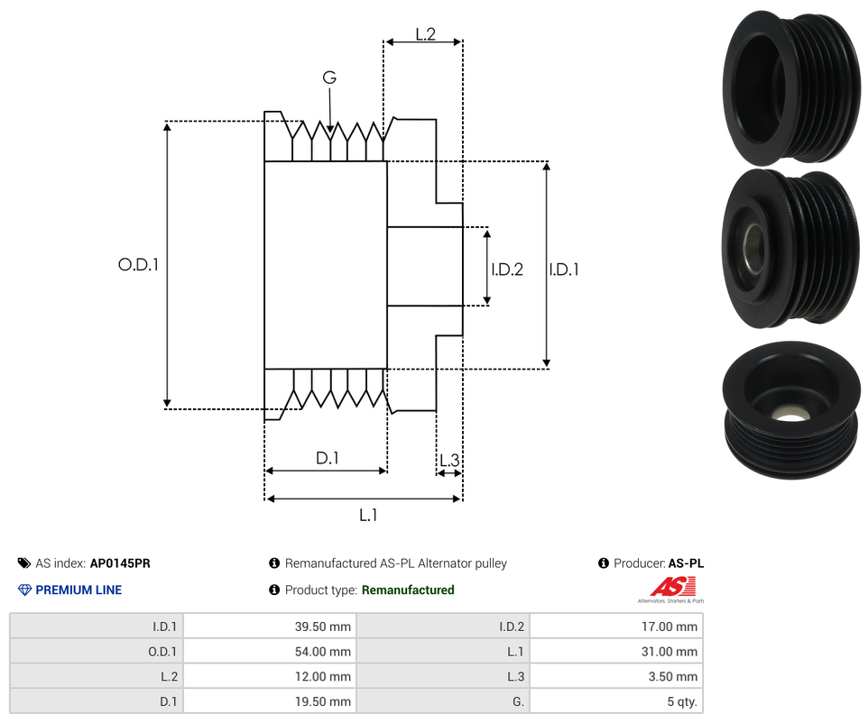| Inside Diameter (I.D.1) | 39.50 mm |